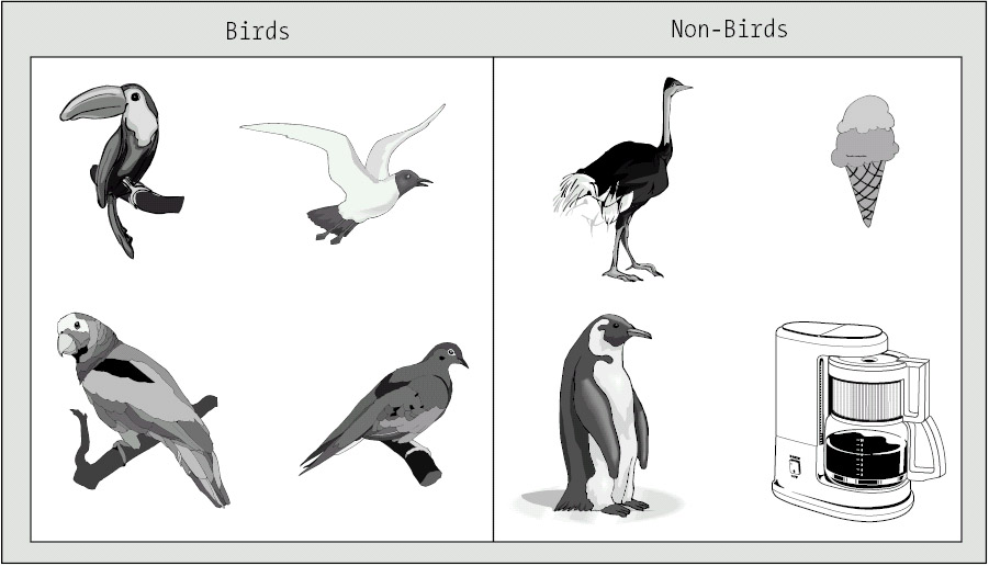 Given these rules, neither an ostrich nor a penguin could be classified as a bird, because neither can fly (see Figure 2-4).