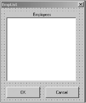 Now it is time to add code to this form. The code is short enough to show here in its entirety. Listings 2-4a and 2-4b show the complete code for the EmpList form.