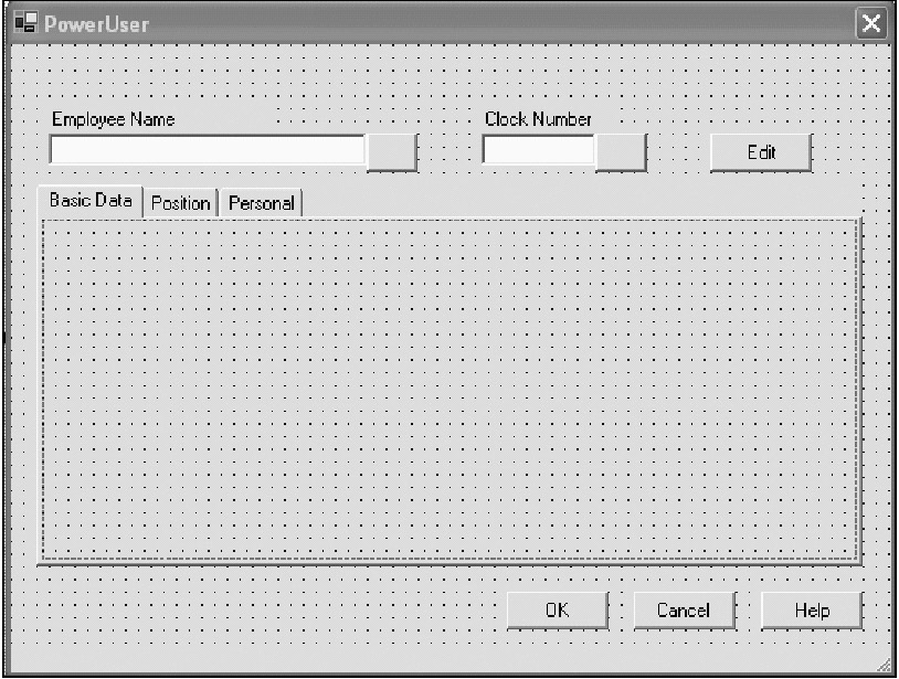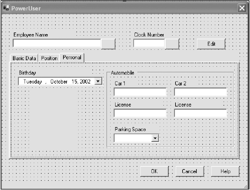 Now it is time to put some controls on the tab pages. Perform the following steps in the controls on this (Basic Data) page:
