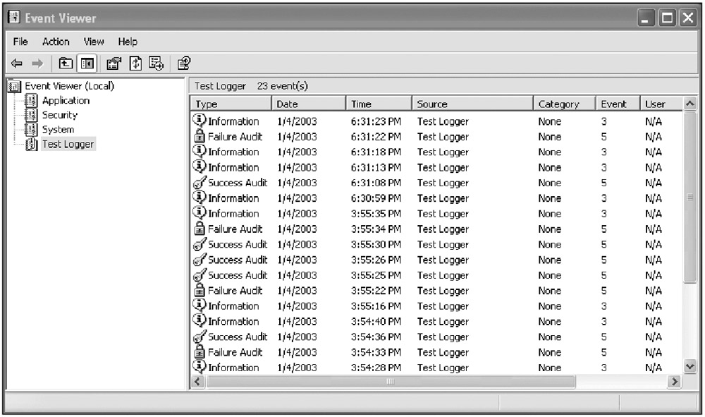 The first thing I want to cover is the EventLogger. You may or may not be aware that since Windows 2000, there are system event log files and extensions to the Windows application programming interface (API) that allow you to read, write, create, and delete these log files.