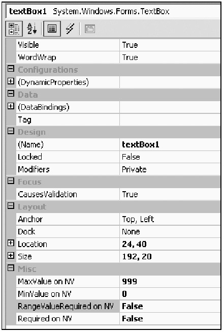 If the new properties are set correctly, you will not be able to enter any letters into the TextBox. You can also set the range of numbers allowed. This control provides a custom ToolTip for the TextBox and also provides a custom ErrorProvider control. You have everything you need to get going.
