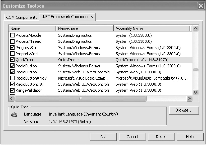Start with a new C# or VB project. Mine is called "QuickTree." This project is a Windows Control Library project—it is not a Windows Forms project. Perform the following steps: