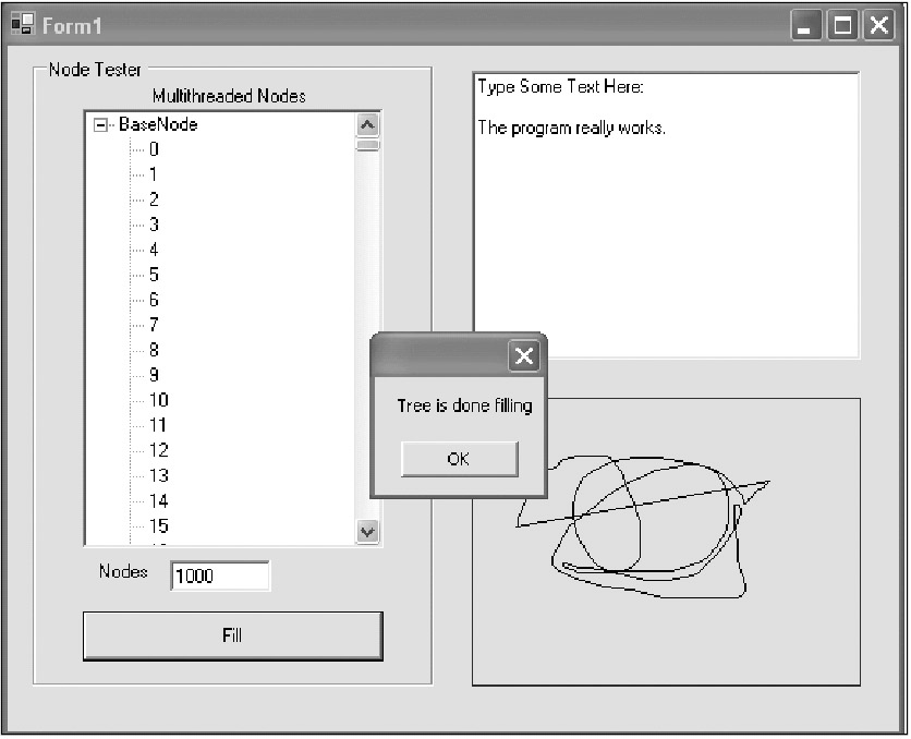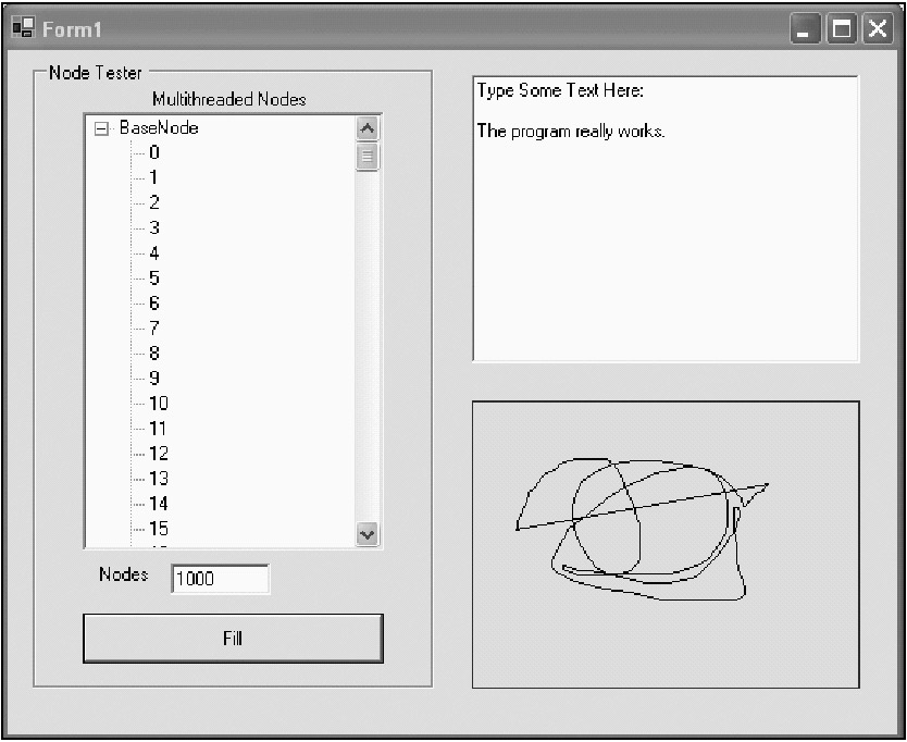 It is now time to put this multithreaded TreeView to a test. Compile the program and fix any errors. If you cannot fix any errors, then download the code for this program from the Downloads section of the Apress Web site (http://www.apress.com). I guarantee it works.