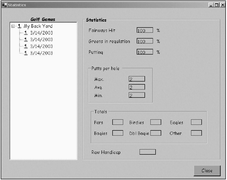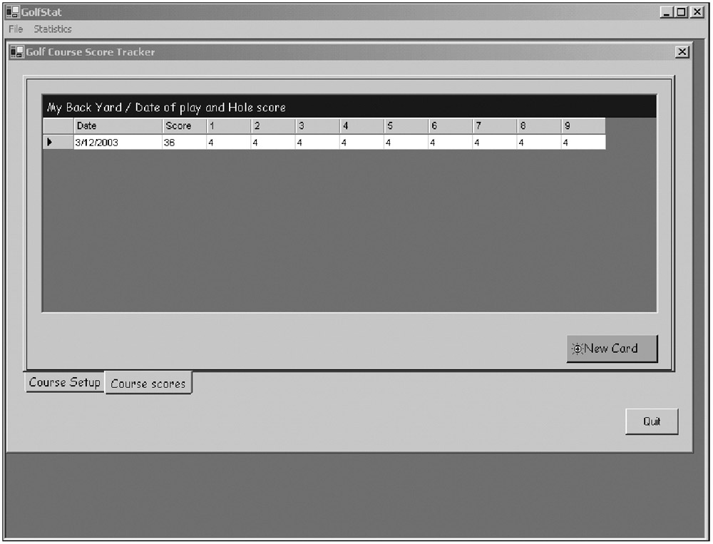 As you can see, I use a TreeView control to look at courses as top-level nodes and individual scorecards as subnodes. This is a slightly different view from using a ListView or DataGrid.