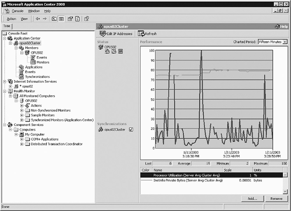 Application Center continuously records and displays different aspects of the health and functionality of your cluster (see Figure 3-15). These aspects are