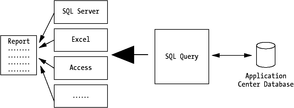 Because the infrastructure of this database is exactly like an ordinary SQL Server and also provides the same functionality, you can use the same ways of accessing this database as you would if you were to access a SQL Server. This means you can use SQL queries and stored procedures to access data. Other data accessing methods, like ADO.NET, are also possible to use, giving you the flexibility to choose for yourself the way you want to retrieve data. If you do not want to go through the trouble of making these queries, you can use the Application Center user interface to display the information you are looking for. The important thing to remember here is that these other accessing methods are available so that, when the user interface does not show you what you want, you can find the information yourself.