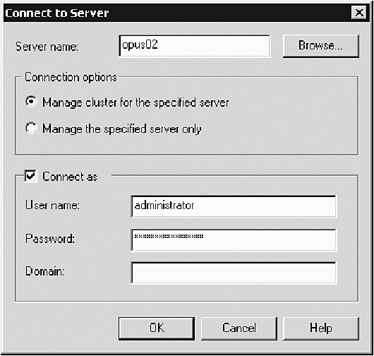 The MMC is not the only administrative tool available, however. There is also a Web-based interface, but this only has limited administrative possibilities. So if you are going to administer a remote cluster or server, you should really try to use the MMC. When you do this, you also get a secure remote connection.