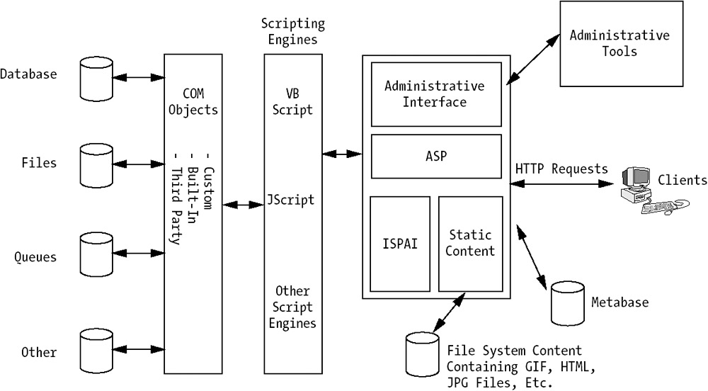 Figure 7-2 presents an architectural overview of IIS 5.0.