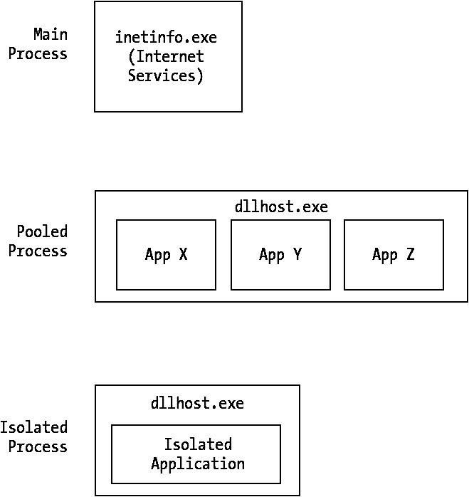 IIS 5.0 provides three ways to run your applications, as listed here (and illustrated in Figure 7-3):