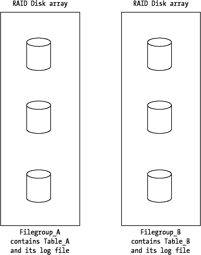 Since the best way to optimize disk I/O is to distribute your data on as many disks as possible, you should consider this during the physical design phase (as you will see later in the section "Physical Design"). By using filegroups, we can even further distribute I/O evenly, because when the data is written to a table on a filegroup that spans many disks, the data is spread in proportion across all the files in the filegroup.