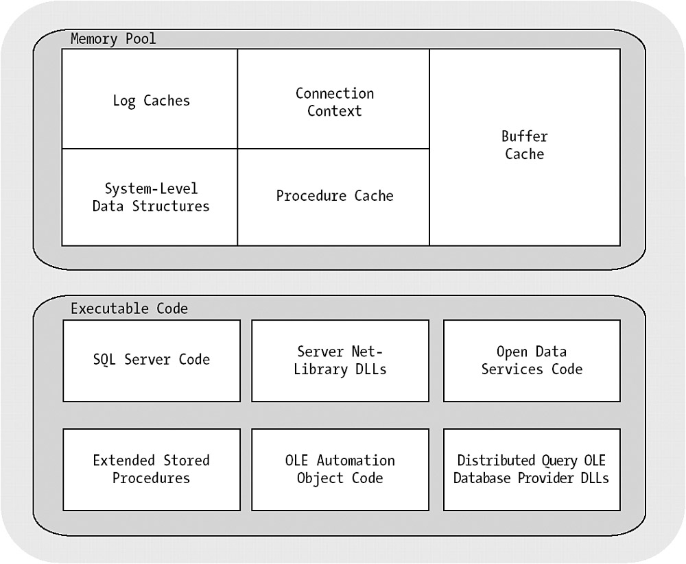 SQL Server uses the virtual memory in Windows for two main components (see Figure 8-5):