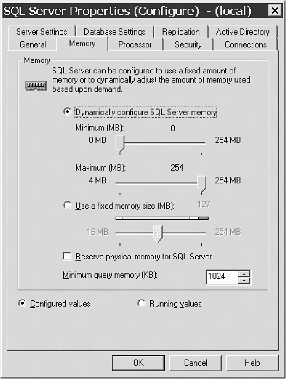 The best approach is to let SQL Server handle memory usage and not to set the manual options. This is especially true when only SQL Server runs on the machine. When you have other applications running, you might need to manually configure these settings, however. With all the consolidation going on these days, it is not unlikely that SQL Server has to share room with other applications, so it could be nice to know these options are available. The following code shows how to set these values from Transact-SQL: