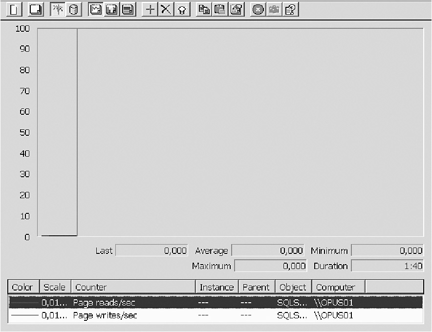 If you want to isolate the disk writes/reads that SQL Server is responsible for, monitor the following two counters (see Figure 8-16):