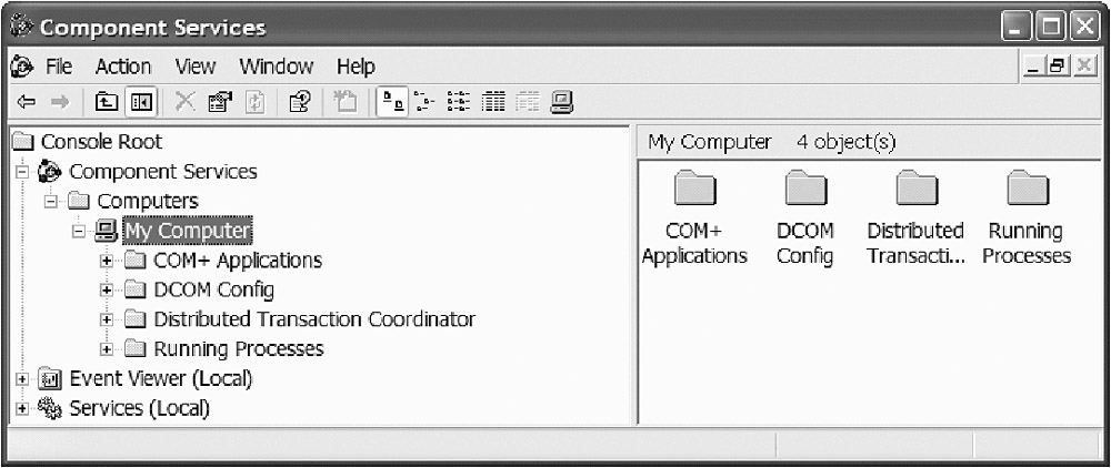 To do so, we start by opening the Component Services Administration tool and expanding My Computer as shown in Figure 9-82.
