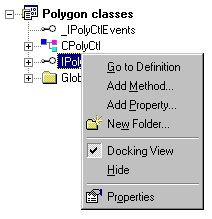 IPolyCtl is the interface that contains your custom methods and properties. The easiest way to add a property to this interface is to right-click it in ClassView and select Add Property.