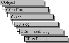 The CFontDialog class allows you to incorporate a font-selection dialog box into your application. A CFontDialog object is a dialog box with a list of fonts that are currently installed in the system. The user can select a particular font from the list, and this selection is then reported back to the application.
