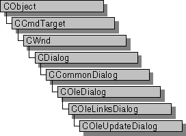 The COleUpdateDialog class is used for a special case of the OLE Edit Links dialog box, which should be used when you need to update only existing linked or embedded objects in a document.