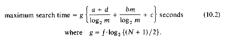 We therefore desire a value of m that minimizes (10.2). Assuming that the disk drive available has a ts = 1/100 sec and tl = 1/40 sec we get a = 0.035 sec. Since d will typically be a few microseconds, we may ignore it in comparison with a. Hence, a + d