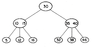 As an example of a 3-way search tree consider the tree of figure 10.9 for key values 10, 15, 20, 25, 30, 35, 40, 45 and 50. One may easily verify that it satisfies all the requirements of a 3-way search