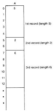Figure 2.8 Variable-Length Records Stored in Array A