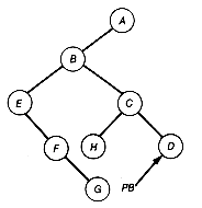Suppose p points to the node currently being processed in t. Let pb point to the corresponding node in bt. In the example, p would now point to D of t and pb to D of bt.