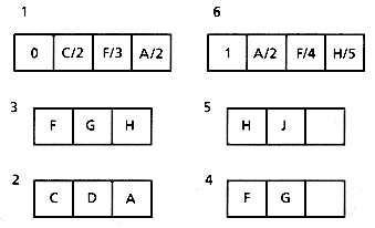 When we insert a further record "J" into the tree, we must split both node 3 and the root node 1. The result is illustrated in Figure 6.3. When we split node 3 we end up with two new nodes 4 and 5. When node 1 is "split" in this case, we can make room in the new node by not including the data/pointer pair C/2 which is now obsolete. This results in one new node, node 6. The extra entry in the new root node now points back to the old root, node 1, so that accesses with respect to a previous time are still possible. Node 3 is no longer in the current version of the tree, but can still be accessed as part of the old version of the tree (prior to the insertion of "J") through the old root.