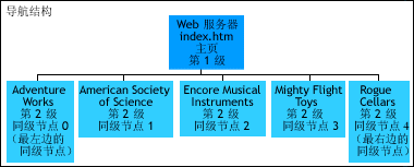 导航结构包含链接您子站点中各网页的站点,并提供指向导航结构中各网页的指针。以下图表显示基于磁盘的导航结构。